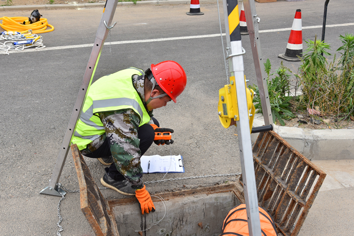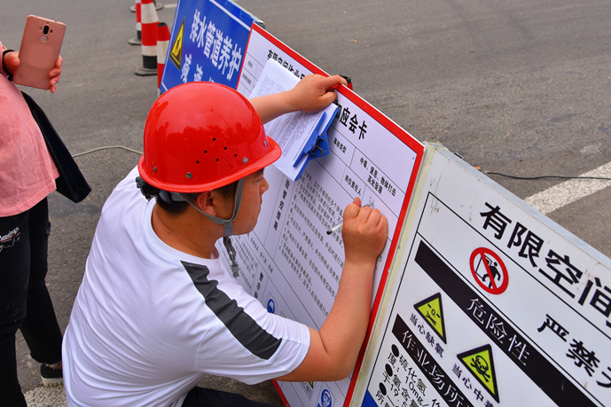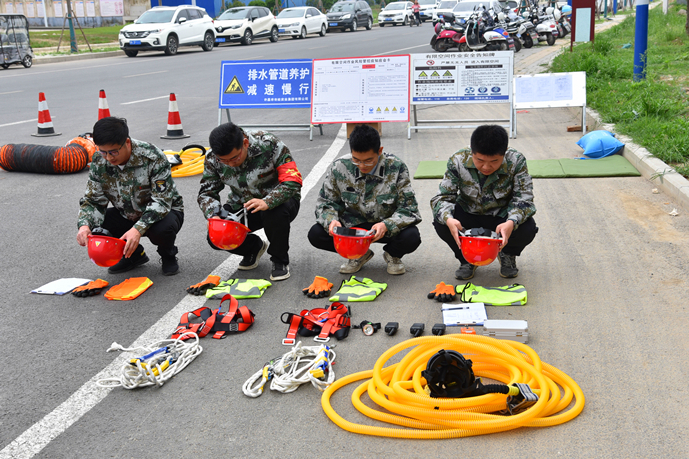 “各參演人員就位,演練開(kāi)始!”隨著演練指揮長(zhǎng)的一聲令下,演練正式開(kāi)始。作業(yè)區(qū)域內(nèi),作業(yè)人員將施工標(biāo)志牌、導(dǎo)向標(biāo)、爆閃燈等警示標(biāo)志放在適當(dāng)顯眼的位置,按照地下空間作業(yè)安全操作流程的要求,相互配合完成各項(xiàng)作業(yè)任務(wù)。演練模擬了作業(yè)人員下井作業(yè)時(shí)受有害氣體侵?jǐn)_的突發(fā)情況。期間,地面同伴發(fā)現(xiàn)地下作業(yè)人員發(fā)生危險(xiǎn),立即向指揮長(zhǎng)匯報(bào)情況,指揮長(zhǎng)收到匯報(bào)后迅速啟動(dòng)《地下有限空間作業(yè)應(yīng)急救援預(yù)案》,并派出救援組攜帶救援物資緊急趕往現(xiàn)場(chǎng)救援。
